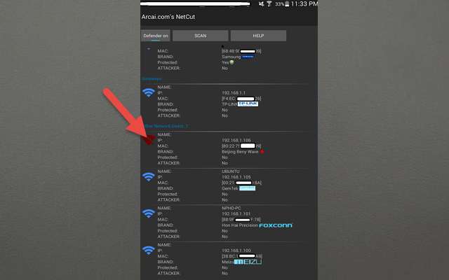بعد ما تثبت التطبيق وتفتحة وتديله صلاحية الروت هيظهر معاك جميع الاجهزة المتصلة بشبكتك