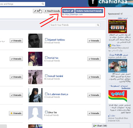 والخاصية المهمه هى خاصية كيفية حذف الاصدقاء دفعه واحده من حسابك