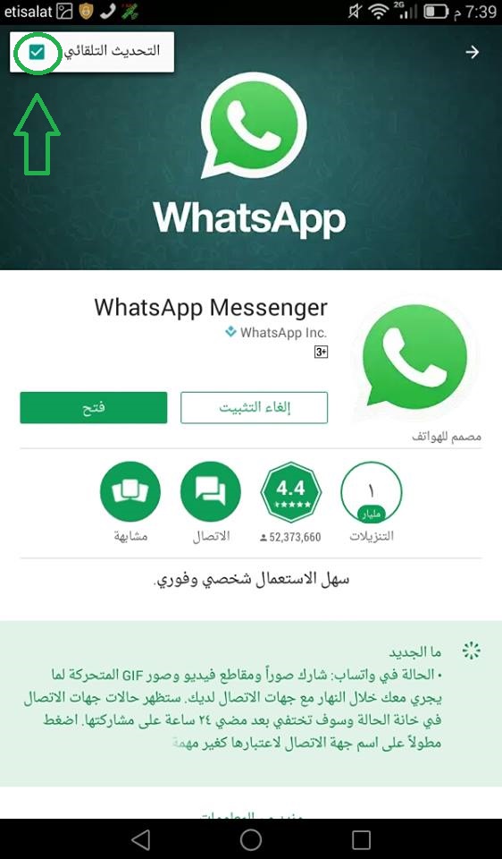 لكى لا يتم تحديث النسخه الجديده من واتساب تلقائيا ومن جديد