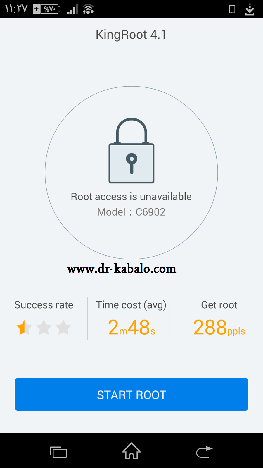 الأن ظهرت لنا رساله تخبرك صديقى بأن هاتفك لا يوجد به اى صلاحيات للرووت