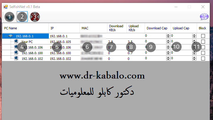 11: يمكنك من هنا قطع الأنترنت عن اى مستخدم معك على الشبكه وترغب بعدم